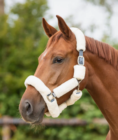 Le licol Alaska est entièrement recouvert de laine synthétique. En raison de la matière douce, le licol est pratique pour les chevaux à la peau sensible