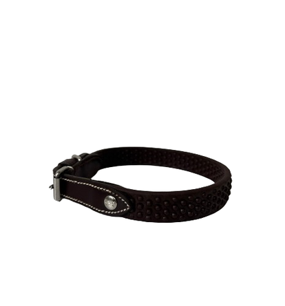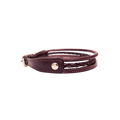 Le collier NINA est en cuir anglais, designé avec 3 lanières : ronde, plate et tressée.