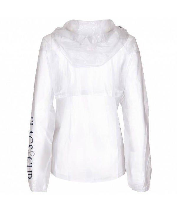 Veste de pluie transparente unisexe, avec écusson poitrine et logo Flags&Cup sur manche gauche. Livrée avec pochette de transport.